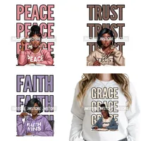 Beten Sie Jesus Faith Trust Schwarze Frau Religiöse gesegnete thermische Designs Bügeln auf DTF überträgt Aufkleber bereit, für Kleidung zu drücken